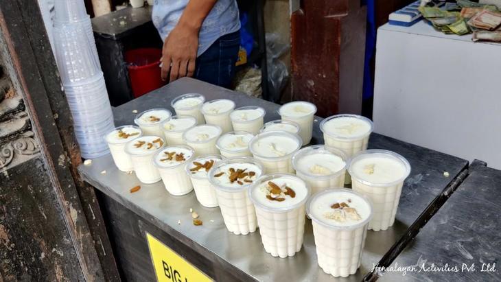 アカスバイラブ寺院下にある、ラッシー屋さんも大にぎわい。この辺り、狭い間口のラッシー屋が隣接し、数軒が競う激戦区になっています。