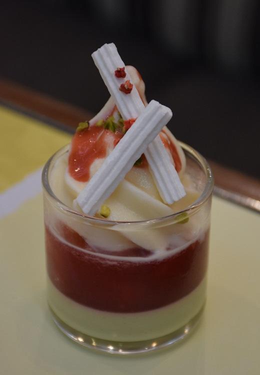 いちごとソフトクリームのミニパフェは、ピスタチオのパンナコッタといちごシャーベットと味わえます。