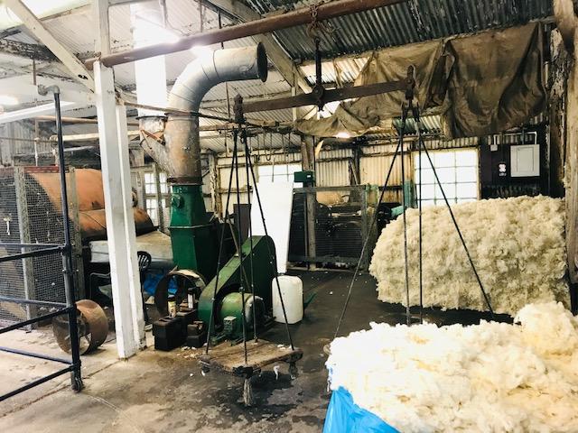 ▲ 羊の原毛からラノリンという油分を除去する作業場