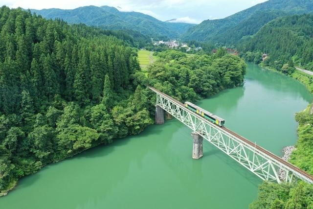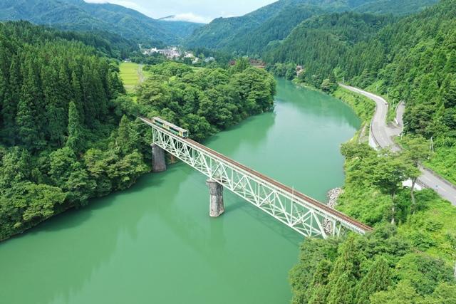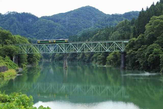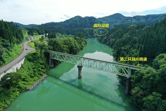 画像中段の長男は、昭和14年建造の貴重な鉄道橋(只見線)です。