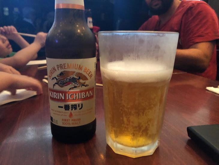 日本のビールも$5~10と通常の値段。ビールのグラスにしては大き過ぎるコップが出てきました。