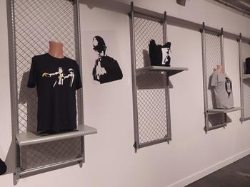 展示会場を抜けると、そこにはバンクシー関連のおみやげ屋さんがあり、どれにも一切値段が表示されておらず、聞かずに買う勇気がない私は、スタッフの人に商品を持って何度も値段を聞きに行くことに……なぜ値段がないの?
