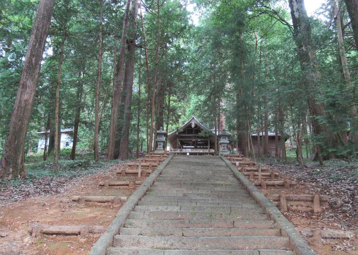 急な石段を上がります。歴史ある深い森のパワーを感じました。