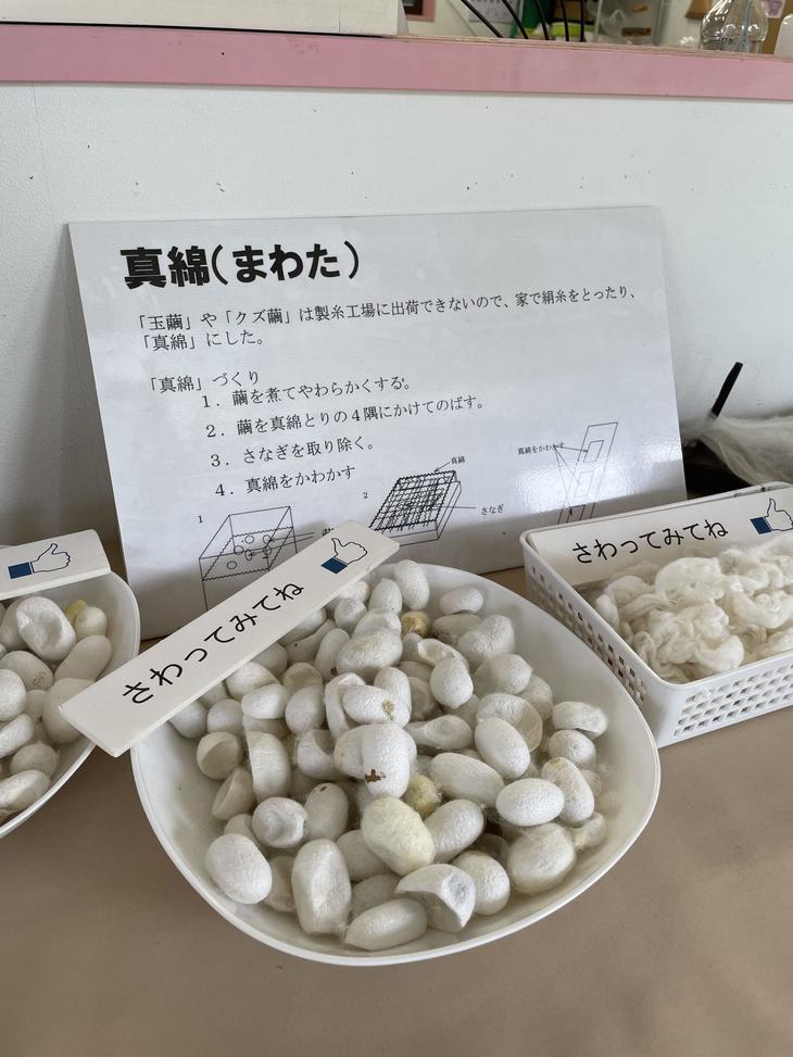 夏休みにみなかみ町のたくみの里ヘ訪れた時寄ってみました。その日は私の父も同行していたので、絹などという言葉を見つけるとすぐ寄り道してしまいます。父は長年、織物業を営んでいましたので繊維関係はベテランです。伝統工芸士も持っていて機屋(はたや)の二代目でした。本来私が三代目のわけですが、料理の道に入ってしまい跡を継げませんでした。親不孝ものです。