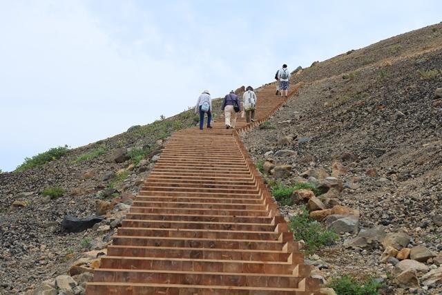 リニューアル工事を終えたばかりの吾妻小富士の登山道(木道)を歩いてみました。