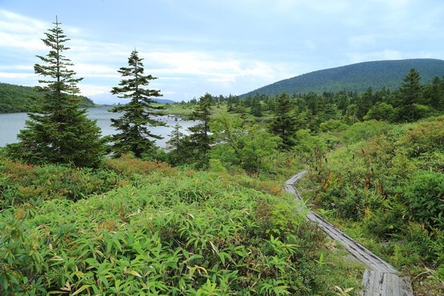 谷地平との分岐を左に折れ、鎌沼の畔を進みます。