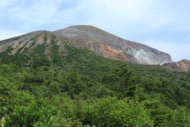 樹林帯の途中より、大穴火口付近を望みます。