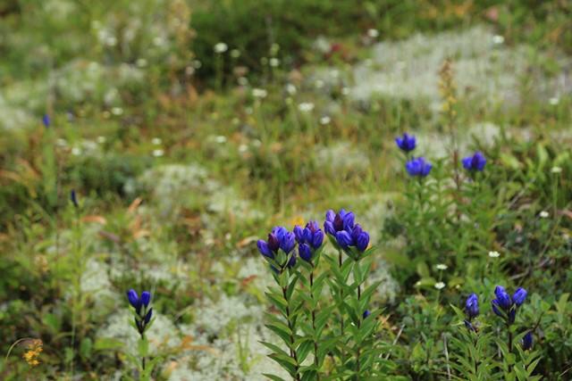 エゾリンドウは、日差しとともに花を開く個体もチラホラと見られました。