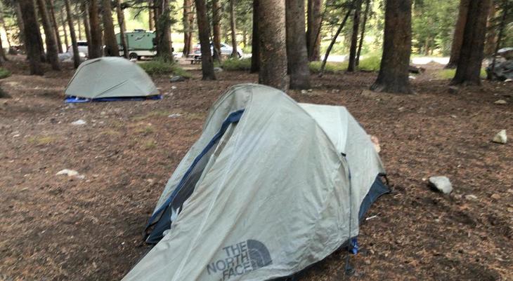 ただ、インヨー国有林が閉鎖されたために、多くの人がこちらを目指すので競争の激化が予想されました。バージニアレイクの登山口(TH)にあるキャンプ場(Trumbull Lake Campground)は半分以上が予約済みで当日早い物勝ちのサイトは10ヵ所しかないことが判明したので、少しでも早く着くためにサンフランシスコを早朝の5時半に出て一路向かいました。キャンプ場まで430km、約5時間半の道のりです。3000m越えの峠道をひたすら走って11時前にキャンプ場に到着。予約のキャンセルも有ったようで、無事にキャンプサイトを確保。最悪満杯の場合日帰りも考えていたので一安心です。キャンプ場は広くて、全員のテントを余裕で張れました。