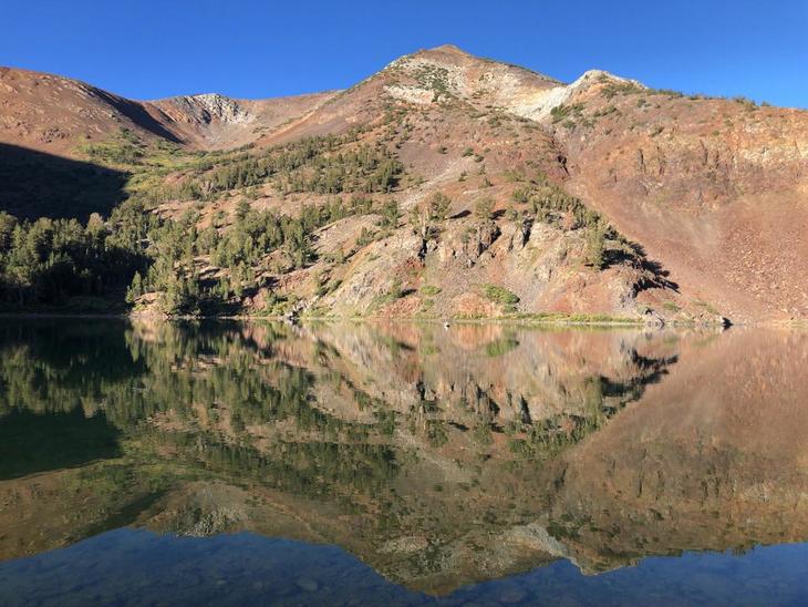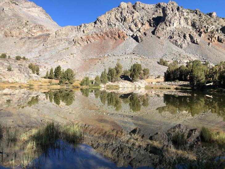 ヨセミテの東に広がる地域は"イースタンシエラ"と呼ばれており、なだらかな景観の多い西側のヨセミテに比べて断崖絶壁が多く、荒々しい景観が魅力です。これは1000万年前のシエラネバダ山脈の造山運動が、西への傾斜活動だったことに起因しています。イースタンシエラは、国立公園としては保護されていませんが、ほとんどの地域が国有林として管理されています。ヨセミテ国立公園の東はインヨー国有林(Inyo national forest)とよばれ、その北にはフンボルトートイヤベ国有林(Humboldt-Toiyabe national forest)が広がっています。今回は、Toiyabe国有林にあるバージニアレイクトレールのハイキングをメインに2泊3日で訪問しました。