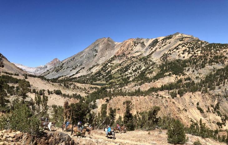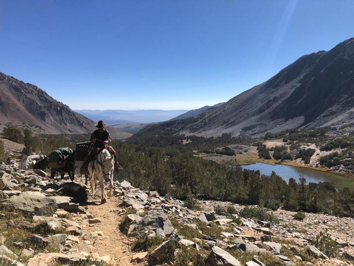 3390mの峠を越えてサミットレイク(Summit Lake)に向かいました。途中馬に乗ったツアーグループがふたつ通り過ぎていきました。峠の向こうにはSummmi Lakeと、右側にはフーバーレイク(Hoover Lake)が見えています。