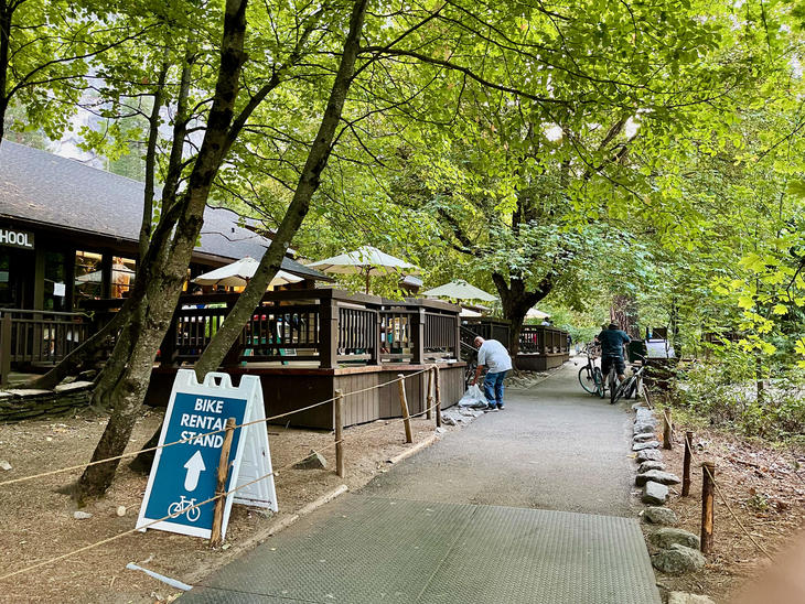 ビレッジの小径を歩いてみました。おしゃれな集落っぽくて、脇にはレンタル自転車、マウンテンショップ(アウトドアグッズ*シーズン終わりのセール要チェックだそうです)ギフトショップやピッザショップ、バーが営業していました(Meadow Grill、Pavillionは閉鎖中)こぢんまりして観光地っぽくなく、ガチなアウトドア系から家族連れ、料金的なものがあるのか比較的若い層が多いように見受けられました。ゴージャスなアワニーホテル(Ahwahnee Hotelサイトこちら)の雰囲気とは違うかもしれません。(苦笑)