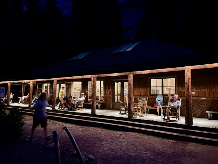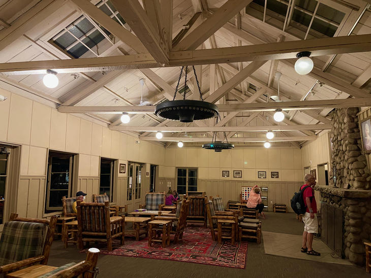 フロントオフィスの隣にあるのが、宿泊者なら誰でも利用できるゲストラウンジ(Guest Lounge)。照明を若干抑え目なのでリラックスできます。ロッキングチェアに寄りかかり夜風にあたるのがいいです。ここでは飲食できると聞いていましたが、時間的に誰も食べてる人いませんでした(ラウンジ利用時間:7:00~22:00)。