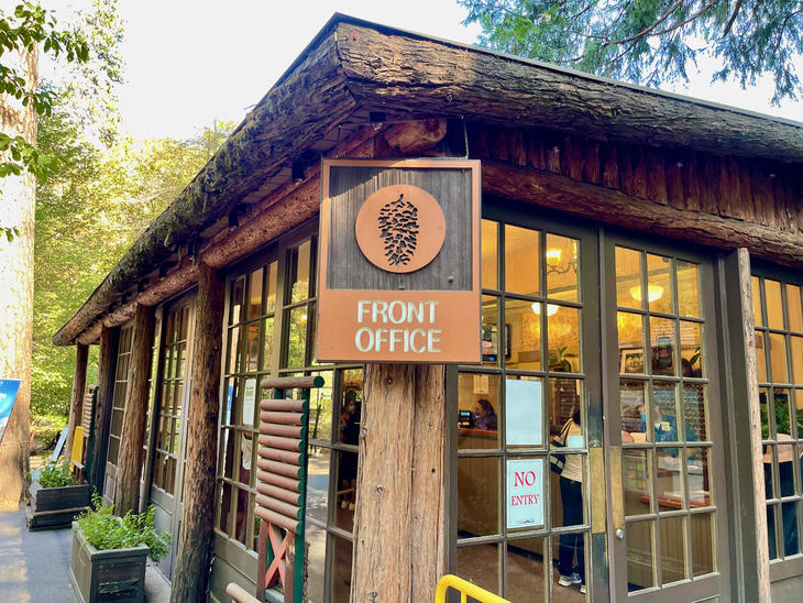 早朝サンフランシスコを出発し公園を散策し、少し早かったのですが夕方4時半にチェックインができました。フロントオフィス内は、人数制限してあったので、混雑しておらず、ひと組ずつていねいな対応。A3サイズの紙の地図に部屋の位置と共有シャワー&トイレの場所とシャワー室のパスコードを記入してもらいました。記された場所が宿泊テント。狭いような広いような、初めてなので何もかもワクワク。