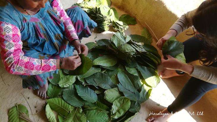 インド国境近くにある沙羅双樹の林からとってきた葉で手作りした葉皿に入れて持って来てくれ、村を感じます。