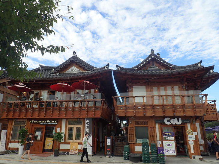 フランチャイズのカフェやコンビニも韓屋様式の建物になっていて、町になじむようになっています。