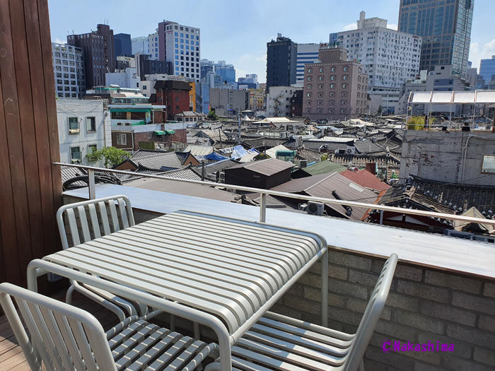 3階の屋上はルーフトップになっていて、お天気の良い日には鐘路の景色を見ながらゆっくりとお茶を楽しめるようになっています。