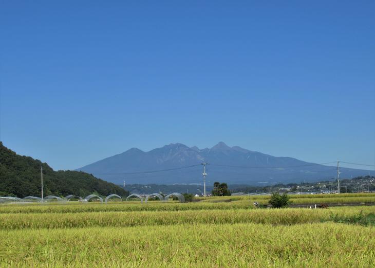そして、北には八ヶ岳が。稲刈りを待つ首を垂れた稲の黄金色が、実りの秋を感じさせてくれました。