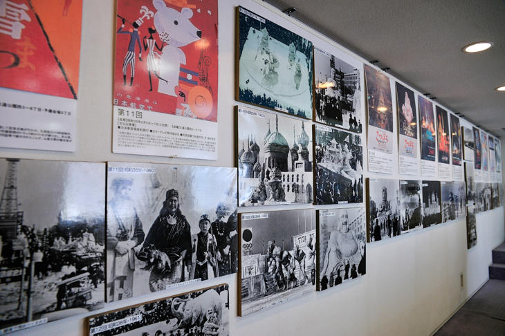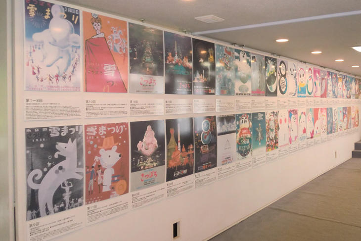 資料館は1階と2階があり、入口を入ると歴代のさっぽろ雪まつりポスターがずらり。