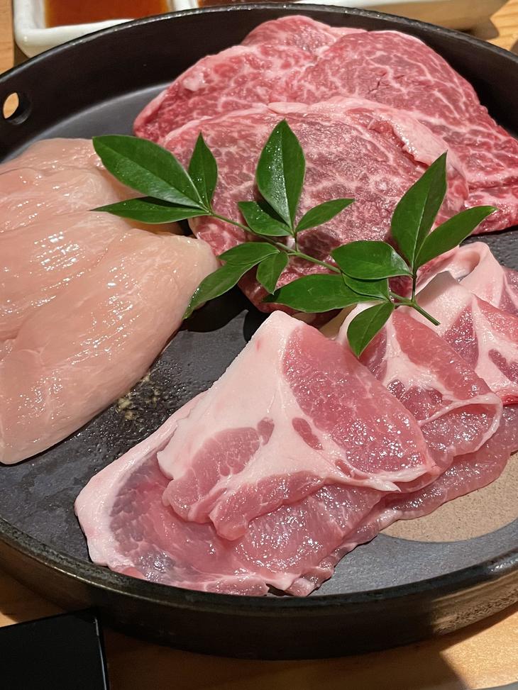 メインの炭火焼きは、上州産の牛、豚、鷄、
