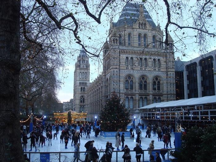 ロンドン冬の風物詩のひとつとしてすっかりおなじみとなった、大英自然史博物館の野外アイススケート・リンク。