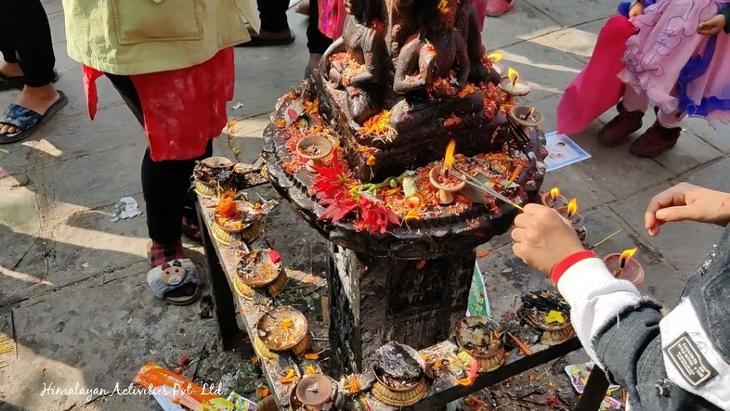 カトマンドゥ市内サラスワティ寺院は朝から参拝客であふれていました。