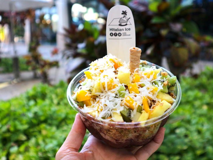 日系移民がハワイに持ち込んだシェイブアイスとイタリア移民がアメリカに持ち込んだイタリアンアイスそして台湾スタイルのかき氷を一緒に楽しめるという、なんともハワイらしいHItalian Iceです。