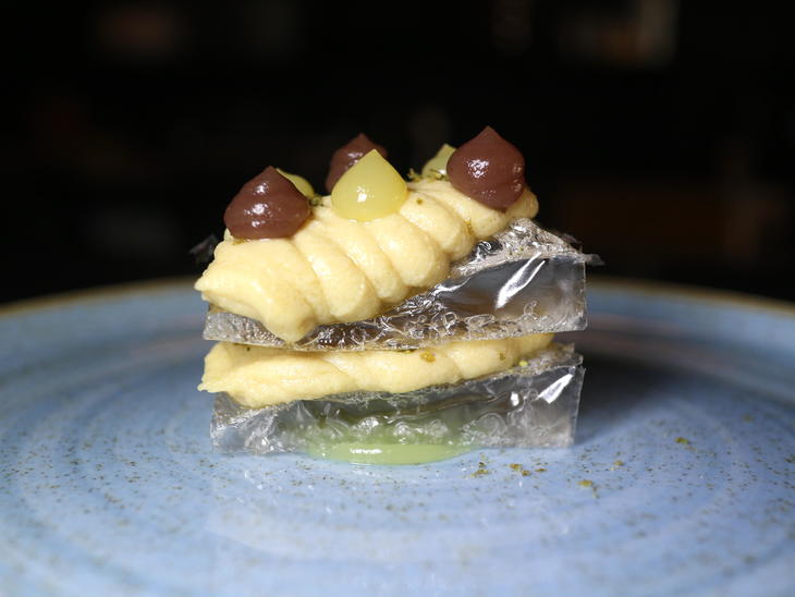 ▲セロリのガスパチョ・シャーベット、きゅうり、ハリッサ、ミント