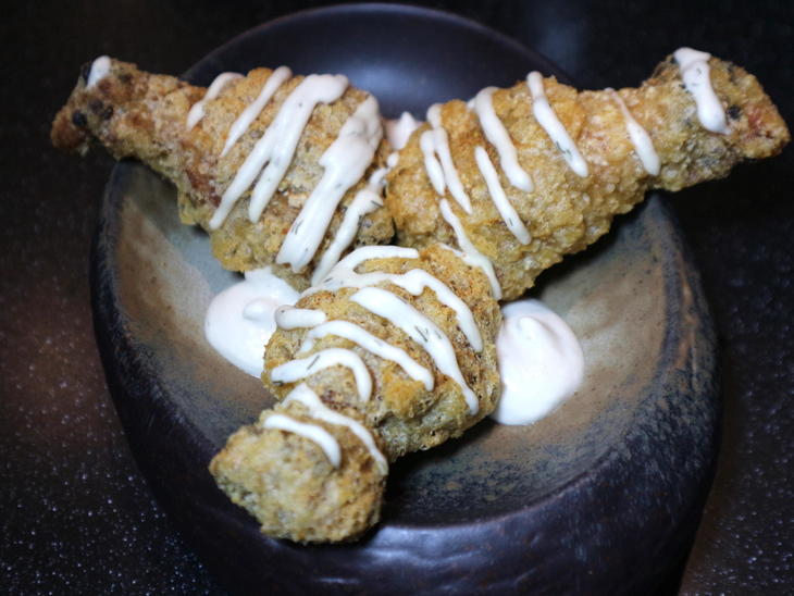 ▲和風カレーコロッケ、11種のハーブとスパイス入り、カシューナッツのランチドレッシング