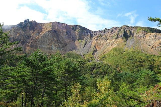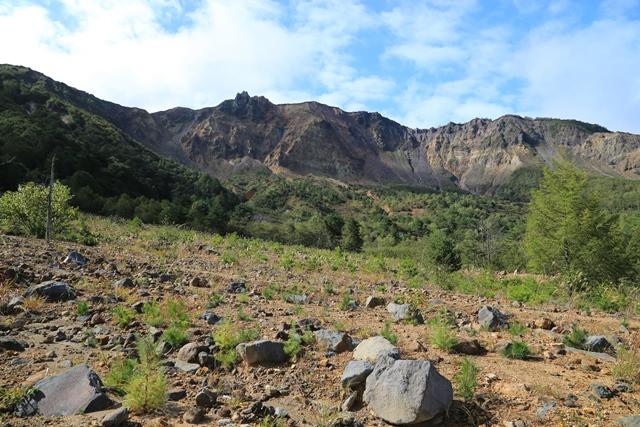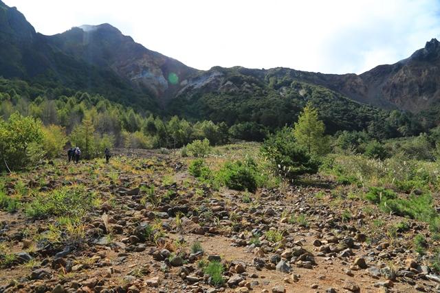 火口原より、櫛ヶ峰(左手側のピーク)とその鞍部