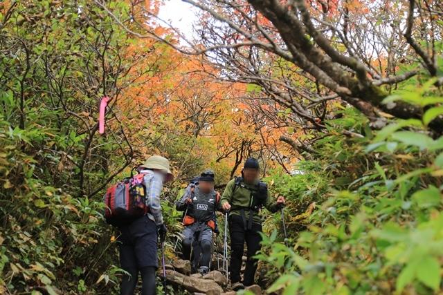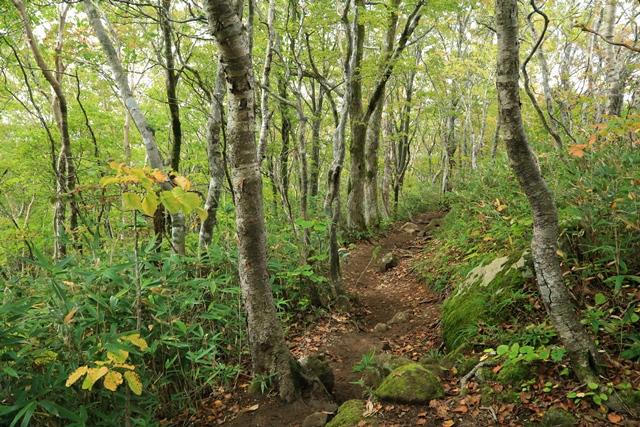 山頂直下とは違い、まだ青々とした様子の樹林帯