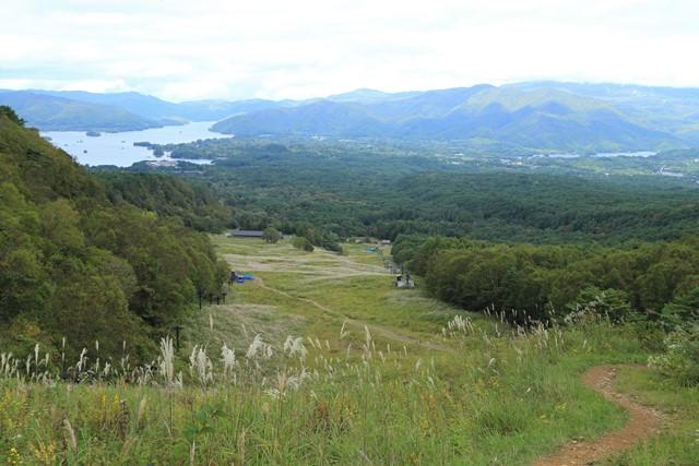 途中、視界の開けたポイントより望む裏磐梯三湖(桧原湖・小野川湖・秋元湖)