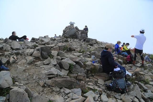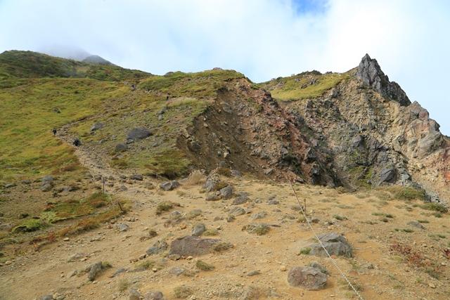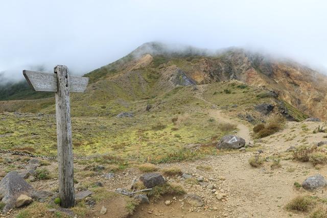 動きの鈍いガスに覆われる山頂方向を目指します。