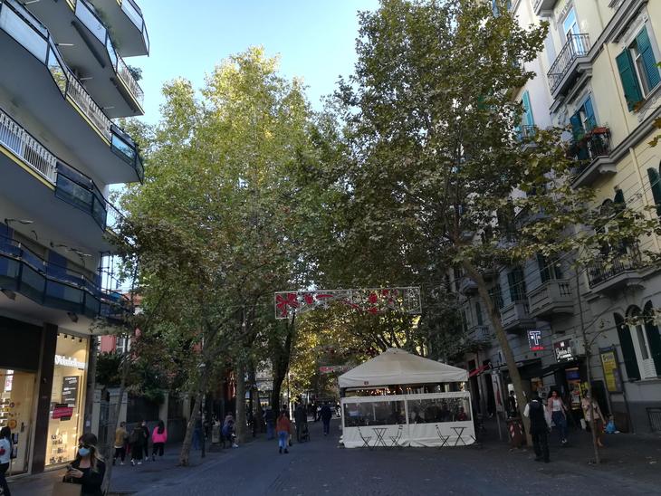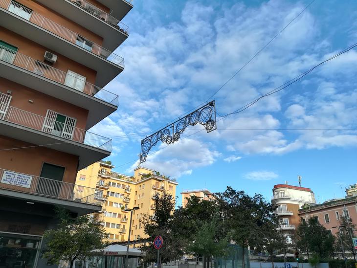 そんななか、9月末にピッパとルーカジョルダーノ通りを歩いているときに、何やらあわただしく飾り付けをしていて、今年はヴォメロ地区で特別にお祭りでもあるのかしら?と思っていましたがそのあと一瞬目を疑いましたよ。