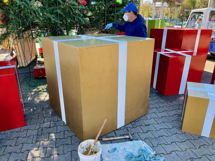 が、ツリーの下に置いてある大きなギフトボックスのお化粧直しの最中でした^ ^;