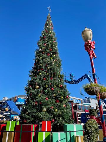 ツリー設置に2日ほどかかる、フィッシャーマンズワーフ・ピア39のツリーは、設置も済み、きれいに飾り付けもできていました。