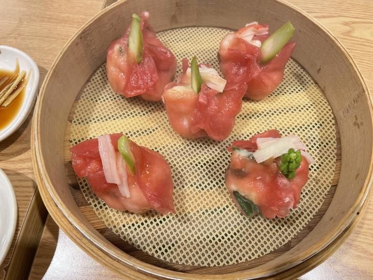 お肉たっぷりにシイタケなどが詰まっていてジューシーでした。