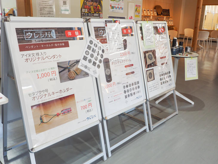 二風谷コタンの一角、「匠の道」沿いにある「ウレシパ」(平取町アイヌ工芸伝承館)は、工芸家を志望する人が技術を学んだり、一般の観光客が工芸を体験できる施設です(「ウレシパ」はアイヌ語で「育て合う」という意味だそう)。