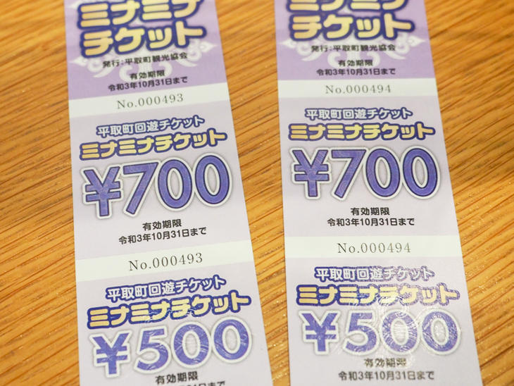 今回はおしえていただいた平取町の指定されたお店で使える「ミナミナチケット」(500円1枚・700円1枚計1200円分を1000円で販売/販売・使用期限2021年11月30日)を二風谷アイヌ文化博物館で購入し、早速、お土産購入に使いました。