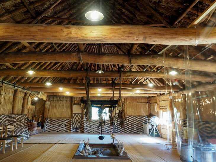 チセの中に入ることもでき、ていねいに復元されたチセの中は、とても興味深い光景です!