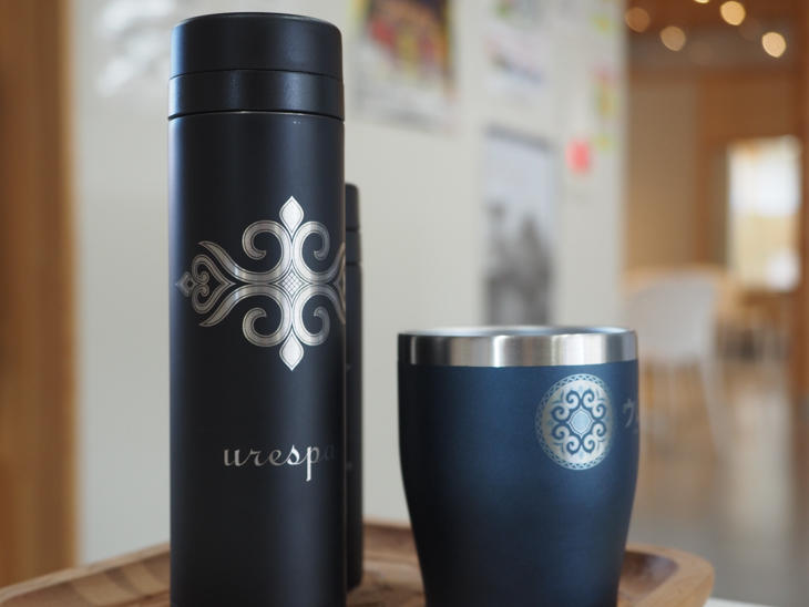 「ウレシパ」では”レーザー加工機”を使って、デザインを選べるアイヌ文様入りオリジナルマグボトルやタンブラーを作ることもできます(要事前予約)。