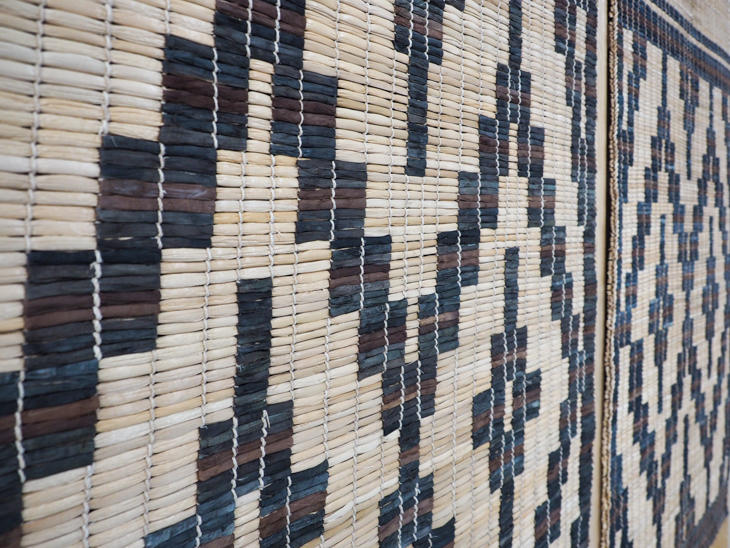 表から見た模様が入っているゴザ(こちらのゴザ↑は二風谷コタンの平取町アイヌ工芸伝承館「ウレシパ」に展示されていた作品)はこのような風合いです。