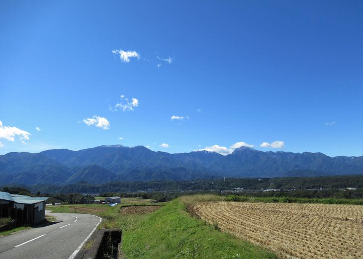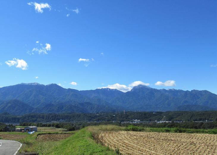甲斐駒ヶ岳は、真ん中のげんこつのようにごつごつと丸く存在感のある山です。