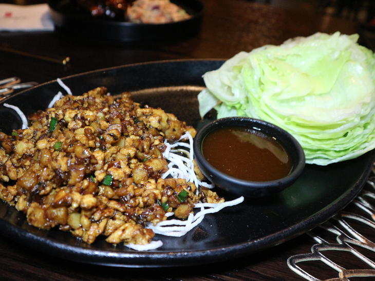 まずは前菜のチャンズ・レタスラップです。これはP.F.チャンズのシグネチャーディッシュで、ここに来たら必ず注文します。具はチキンかベジタリアンバージョンから選びます。