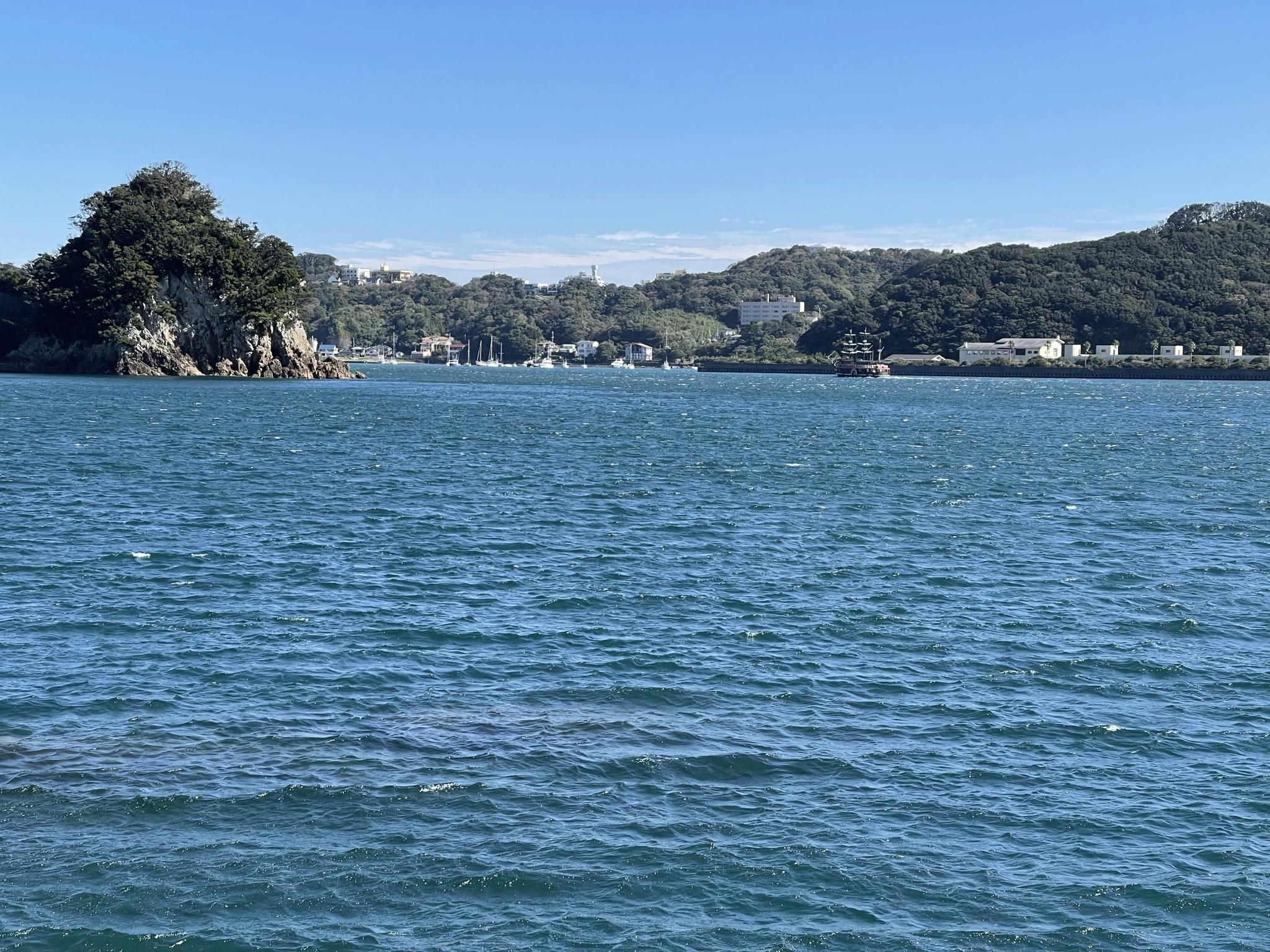 下田港を左に望みながら進むと海上保安庁の巡視船や下田港内遊覧船「サスケハナ」が。