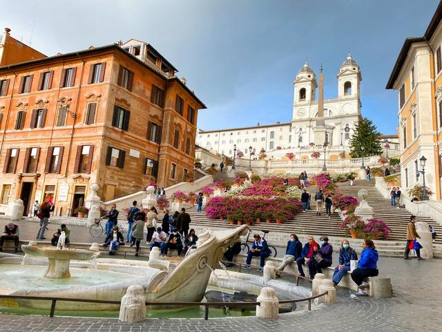 ↑ ローマのスペイン階段です。サツキが美しい日でした。イタリアを訪れる観光客さんもまだまだ少ないです。