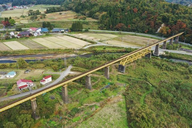 一ノ戸川橋梁は、長さ445m(16支間)・高さ24mの鉄橋で、架橋は1908年。