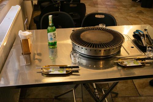日本の焼肉と違って、テーブルも食器もすべて金属製で本場のお店に来たという感じがしました。