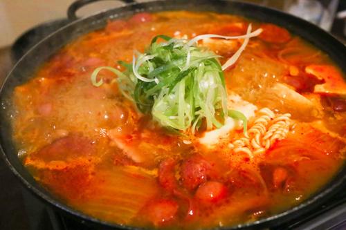 チゲ鍋は、ここオリジナルのチゲ鍋で、具材にはソーセージ系、白菜、豆腐、マカロニ、ラーメンが入っていて、ピリ辛ですが、辛いのが苦手な人でもおいしく味わえる味となっていました。