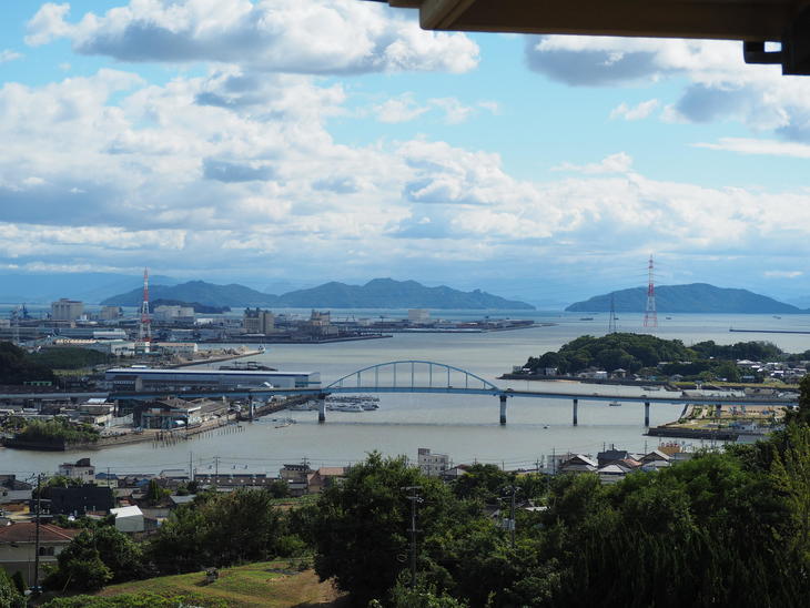 ご覧のように見晴らしのいい高台にあり、水島灘が一望できます。
